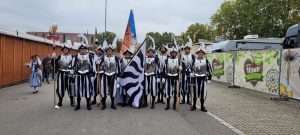 Die Organisatoren des Stuttgarter Wasen (Volksfest) haben die Dreiländereck Trachtengruppe mit der Basler Garde am Eidg. Trachtenfest 2024 in Zürich gesehen und uns zu ihrem Festumzug 2025 eingeladen. Aufgrund der Transportkapazitäten konnten sich 9 Gardisten beim Friedhof in Weil treffen. Durch den Ausfall des Hauptverantwortlichen flossen die Informationen leider nicht zeitgerecht. Aber dank glücklicher Kommunikation …